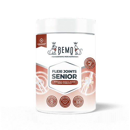 Idősebb kutyák étrendjének kondroprofilaktikus gazdagítására szolgáló termék. Egyedülálló, a mozgásszervi rendszer működését támogató hatóanyagokkal dúsított formula, többek között: II-es típusú kollagén, glükózamin-hidroklorid, kondroitin-szulfát, hialuronsav, tojáshártya, MSM és PEA. A Flexi Joints Senior biztosítja a szükséges hatóanyagokat a mozgásszervi rendszer megfelelő működésének fenntartásához, miközben biztosítja a kutya zökkenőmentes motoros képességeit. A formula olyan anyagokat tartalmaz, amelyek támogatják az idős kutyák emésztőrendszerének és immunrendszerének működését.