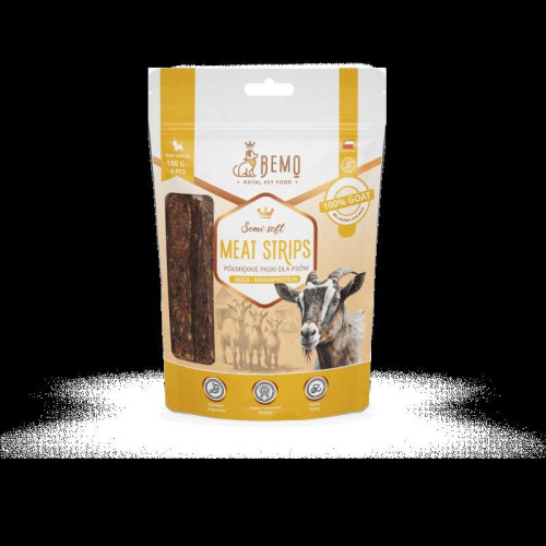 A húscsíkok kivételesen ízletes húscsemegék kutyák számára. Nagyszerű módja annak, hogy egészséges módon diverzifikálja étrendjét, és kivételesen ízletes jutalom képzések és séták során. Puha szerkezetének köszönhetően tökéletes kölyökkutyák és idősebb, fogászati problémákkal küzdő kutyák számára is. A húscsíkok monoprotein finomságok, amelyek 100% kecskét tartalmaznak. A kecskehús egyre inkább elismert választás a kutyák étrendjében, különösen az egészséges és tápláló fehérjeforrást kereső tulajdonosok körében. A kecske kiváló minőségű fehérjében gazdag, amely elengedhetetlen az izomtömeg fenntartásához, a szövetek regenerálódásához, az enzim- és hormontermeléshez. A kecskehús fehérjetartalma 20-23% körül van. A kecskehús koleszterintartalma alacsonyabb, mint sok más húsfajta, így jó választás azoknak a kutyáknak, akiknek szív- és érrendszeri problémái vannak, vagy diétára van szükségük a szív egészségének támogatása érdekében. A kecske, akárcsak a szarvas vagy a nyúl, kevésbé gyakori fehérjeforrás, így jó választás ételallergiában, vagy más gyakoribb húsokkal szembeni intoleranciában szenvedő kutyák számára. Kiválóan alkalmazható eliminációs diéta részeként. Alacsony zsírtartalmának köszönhetően a kecskehús alacsony kalóriatartalmú, amely segít fenntartani az egészséges testsúlyt, különösen a kevésbé fizikai aktivitással rendelkező vagy túlsúlyra hajlamos kutyáknál. A kecske természetes, jellegzetes ízű, amelyet sok kutya szeret. Még a válogatós háziállatok számára is vonzó lehet, ami megkönnyíti az étrendbe való bevezetését.